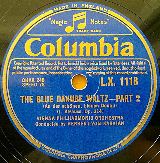 Vienna Philharmonic Orchestra* Conducted By Herbert von Karajan - The Blue Danube Waltz (Shellac, 12") (Very Good (VG))