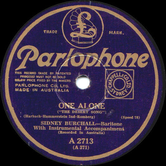 Sidney Burchall - The Desert Song / One Alone (Shellac, 10") (Very Good (VG))
