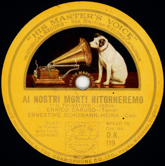 Enrico Caruso, Frances Alda, Ernestine Schumann-Heink - Ah! Che La Morte Ognora / Ai Nostri Monti Ritorneremo (Shellac, 12") (Poor (P))