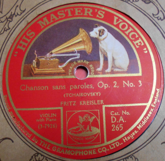 Fritz Kreisler - Souvenir / Chanson Sans Paroles (Shellac, 10") (Very Good (VG))