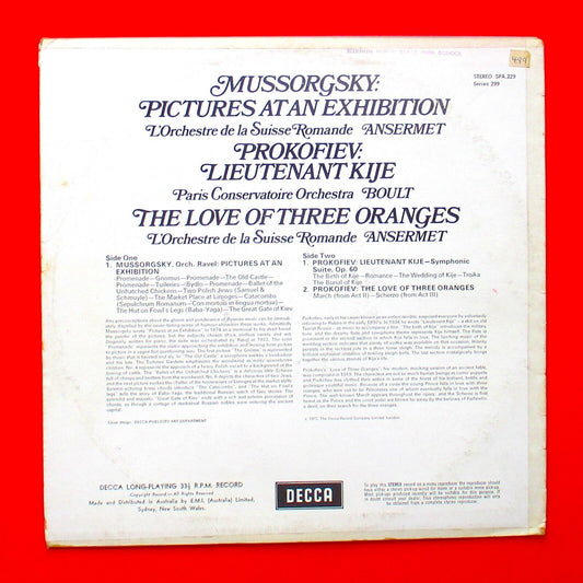 Mussorgsky Prokofiev Pictures At An Exhibition Lt. Kije The Love Of 3 Oranges LP