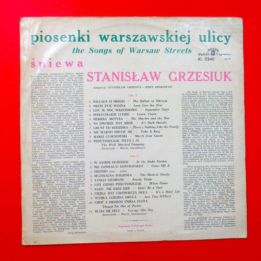 Stanisław Grzesiuk Songs of the Warsaw Street Vinyl Album LP 1967 Polish Folk