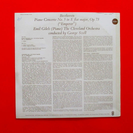 Beethoven Piano Concerto No. 5 In E Flat Major, Op. 73 ("Emperor") LP 1973
