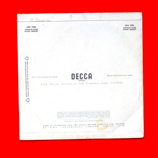 Charlie Kunz Piano Medley No. 1 Vinyl 10" LP Microgroove Australian