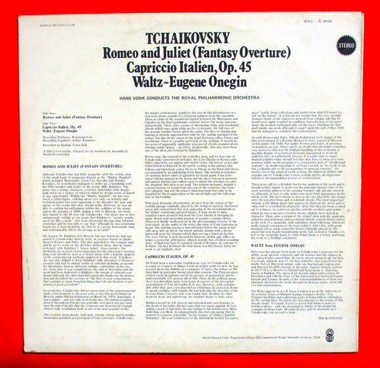 Tchaikovsky Romeo & Juliet, Op. 45 and Waltz Eugene Onegin Vinyl Album LP