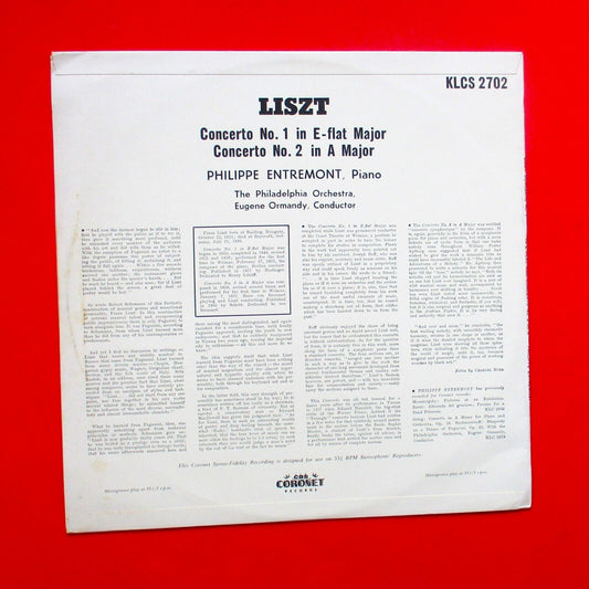Franz Liszt Philippe Entremont Concertos Nos. 1 And 2 Vinyl LP Australian Press