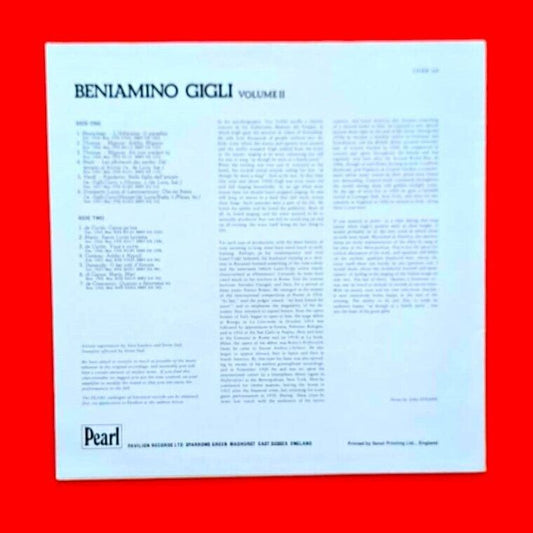 Beniamino Gigli Volume II Vinyl LP Pearl Historical Series Opera Classical 1979