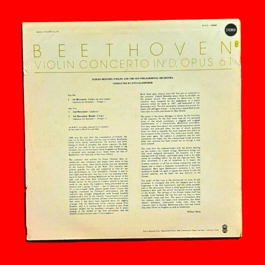 Beethoven Violin Concerto In D, Opus 61 Vinyl Album LP 1979 Australian Pressing