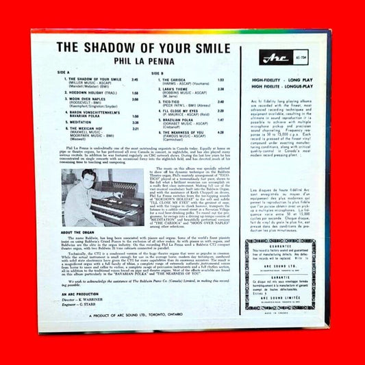 Phil LaPenna The Shadow Of Your Smile Vinyl Album LP Vintage Canada Press