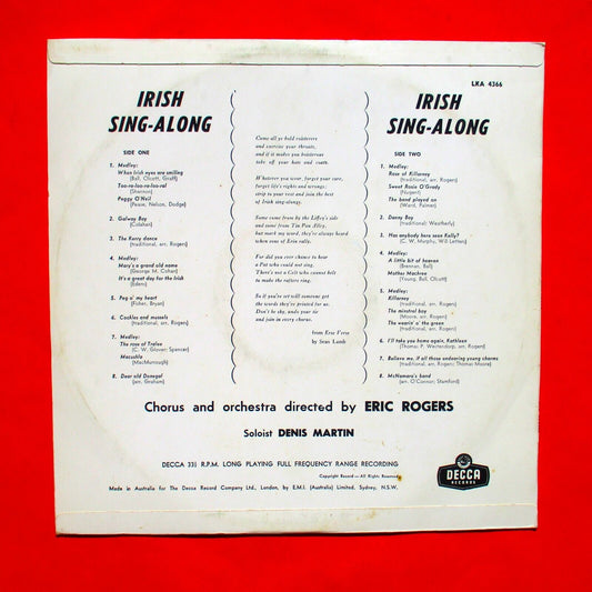 Eric Rogers Denis Martin Irish Sing-Along 1960 Vinyl Album LP