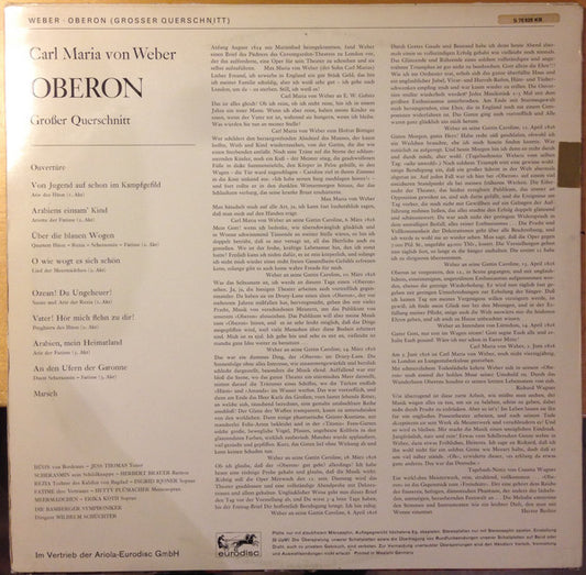 Carl Maria von Weber, Jess Thomas, Herbert Brauer, Ingrid Bjoner, Hetty Plümacher, Erika Köth, Wilhelm Schüchter - Oberon (Grosser Querschnitt) (LP) (Very Good Plus (VG+))