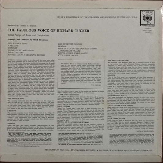 Richard Tucker - The Fabulous Voice Of Richard Tucker - Great Songs Of Love And Inspiration (LP) (Very Good Plus (VG+))