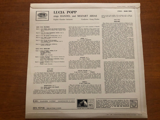 Wolfgang Amadeus Mozart, English Chamber Orchestra, Lucia Popp, Georg Fischer, Georg Friedrich Händel - Lucia Popp Sings Mozart And Handel (LP, Album, RE) (Very Good Plus (VG+))