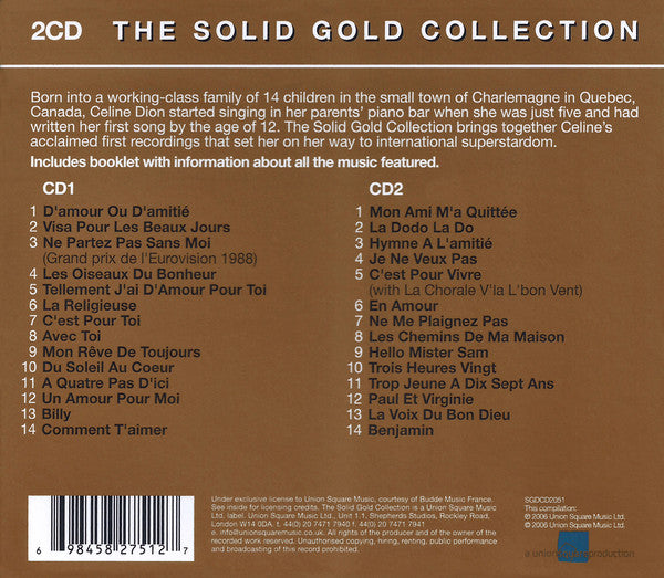 Céline Dion - The Solid Gold Collection (2xCD, Comp) (Very Good Plus (VG+))