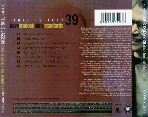 Dave Brubeck - Dave Brubeck Plays Standards (CD, Comp) (Very Good Plus (VG+))