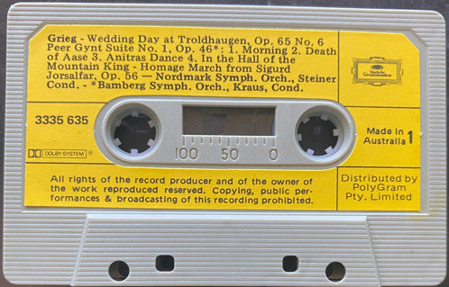 AU grey cassette, yellow labels, metal screws A1, A3: ℗ 1965 A2: ℗ 1959 B1 to B3: ℗ 1966 Made In Australia — Side A: (P) 1965 (1, 3); 1959 (2) Polydor International GmbH Side B: (P) 1966 Polydor International GmbH