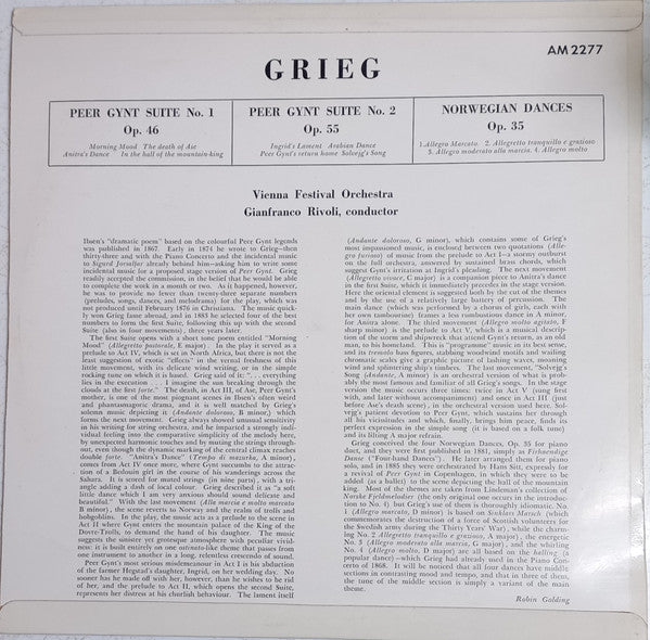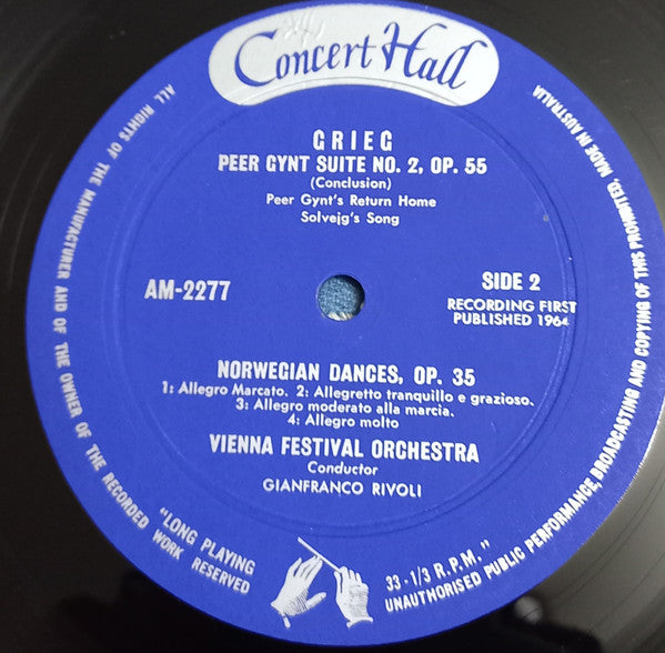 Edvard Grieg, Wiener Festspielorchester, Gianfranco Rivoli - Peer Gynt Suite No. 1, Op.46 / Peer Gynt Suite No. 2, Op.55 / Norwegian Dances Op. 35 (LP, Comp, Fli) (Very Good Plus (VG+))