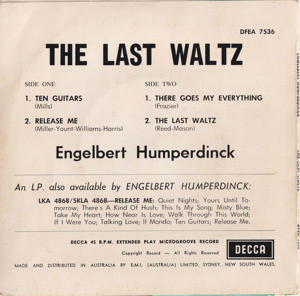 Engelbert Humperdinck - The Last Waltz (7", EP, Mono, RE) (Very Good Plus (VG+))