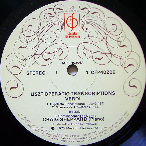 Franz Liszt - Craig Sheppard - Operatic Transcriptions (LP, Album) (Very Good Plus (VG+))