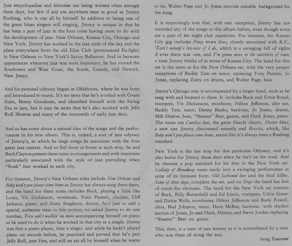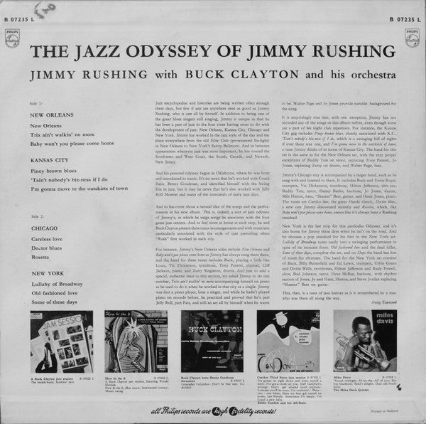Jimmy Rushing With Buck Clayton And His Orchestra - The Jazz Odyssey Of Jimmy Rushing (LP, Album) (Very Good Plus (VG+))