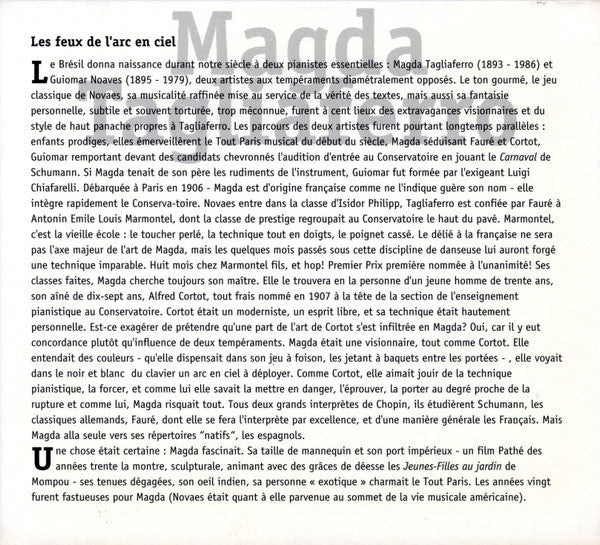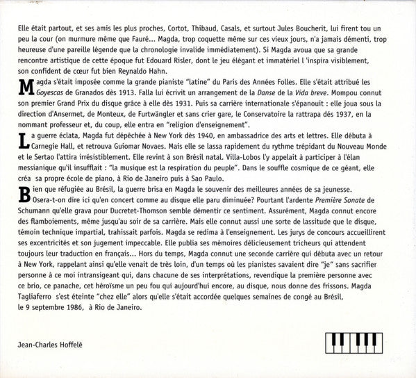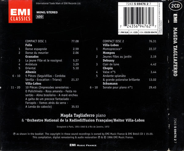 Magda Tagliaferro - Falla - Granados - Albéniz - Villa-Lobos - Mompou - Debussy - Chopin - Schumann (2xCD, Comp, Mono, RM) (Very Good Plus (VG+))