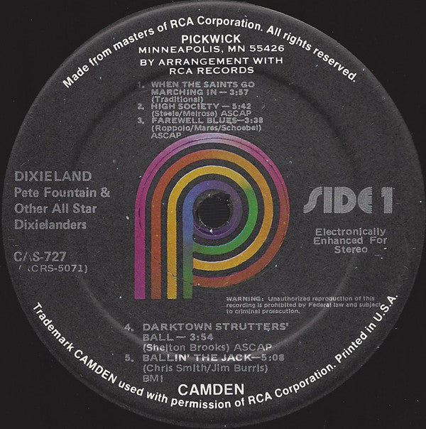Stereo effect reprocessed from monophonic. Previously released on Camden Records Labels: Pickwick Minneapolis, MN 55426 > address from the 70s By arrangements with RCA Records (was launched in 1973)