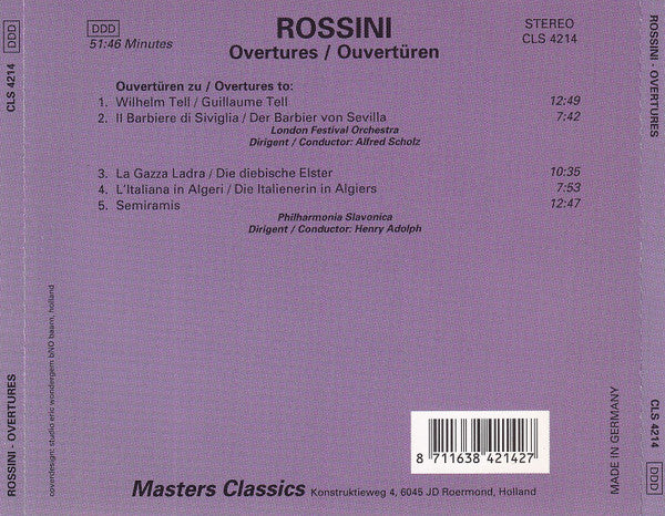 Rossini* - London Festival Orchestra Dir./Cond.: Alfred Scholz, Philharmonia Slavonica Dir./Cond.: Henry Adolph - Overtures = Ouvertüren (CD, Comp) (Very Good Plus (VG+))