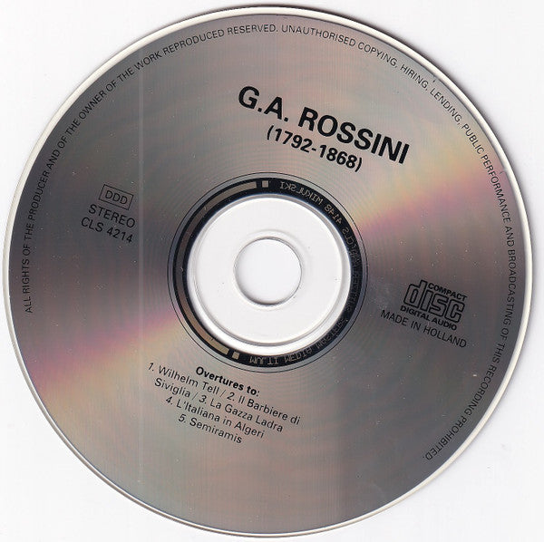On disk G.A. ROSSINI (1792-1868) STEREO MADE IN HOLLAND On back cover 51:46 Minutes STEREO Coverdesign: studio eric wondergem bNO baarn, holland MADE IN GERMANY