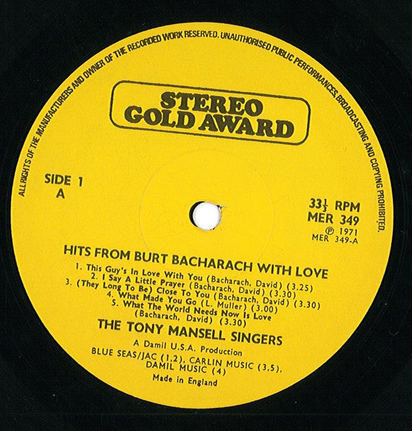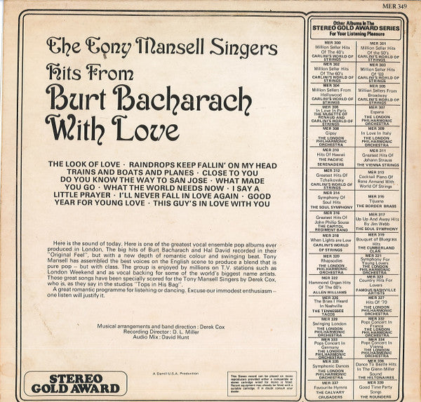 The Tony Mansell Singers - Hits From Burt Bacharach With Love (LP) (Very Good Plus (VG+))
