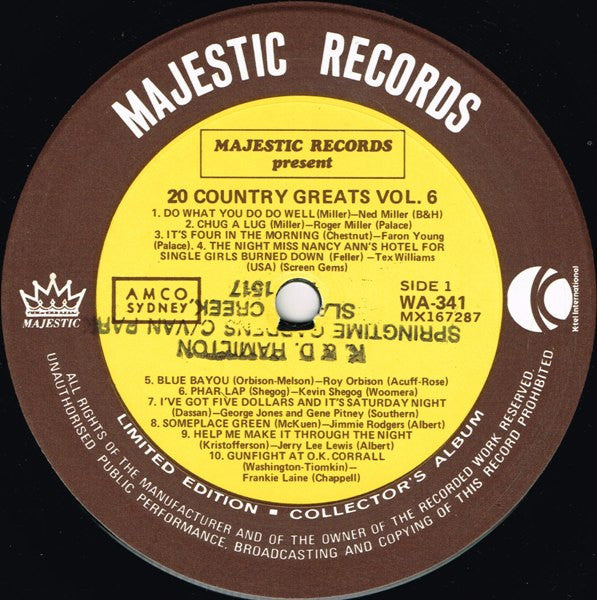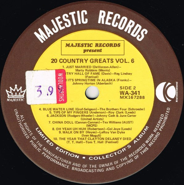 Various - 20 Country Greats Vol. 6 (LP, Comp, Ltd) (Very Good Plus (VG+))