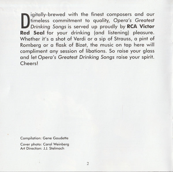 Various - Opera's Greatest Drinking Songs And Other Intoxicating Melodies (CD, Comp) (Very Good Plus (VG+))