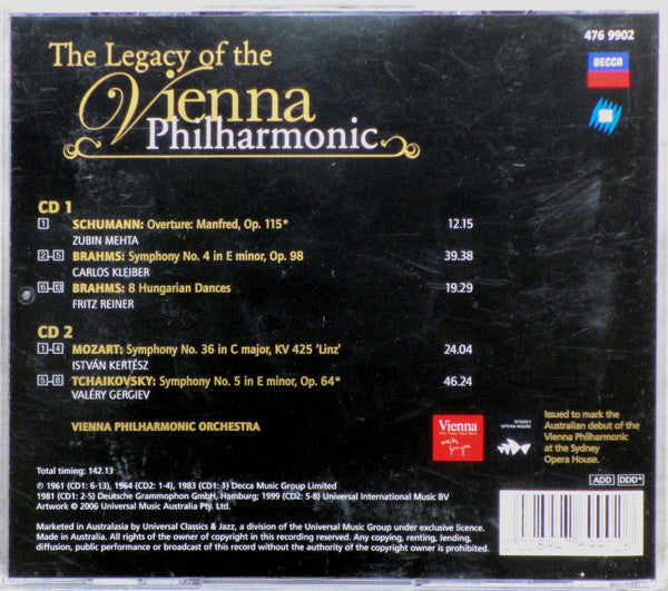 Wiener Philharmoniker / Wolfgang Amadeus Mozart • Johannes Brahms • Robert Schumann • Pyotr Ilyich Tchaikovsky / Valery Gergiev • István Kertész • Carlos Kleiber • Zubin Mehta • Fritz Reiner - The Legacy Of The Vienna Philharmonic (2xCD, C